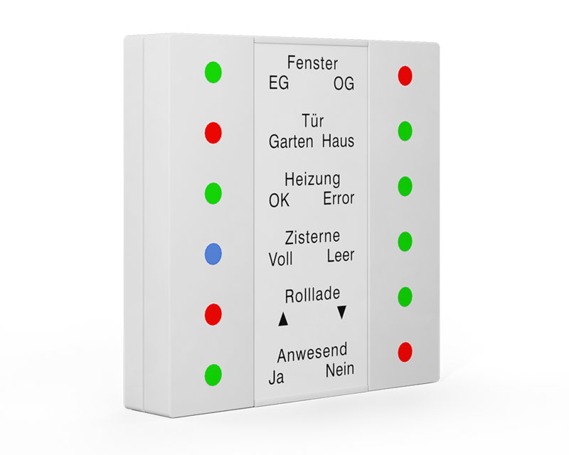 The MDT LED Indicator 55 with its 12 LEDs is ideal for visualising status messages of all kinds. Three states can be displayed (red, green, blue) for visualising the window status: closed / tilted / open, for example. Integrated logics enable, among other things, the combination of several window contacts.The MDT LED Indicator 55 fits into the switch lines of leading manufacturers, such as:GIRA Standard 55, E2, E22, Event, EspritBERKER S1, B3, B7JUNG A 500, A PLUS, A CREATION, AS 500, A550, A FLOWMERTEN 1M, M-Smart, M-Plan, M-Pure