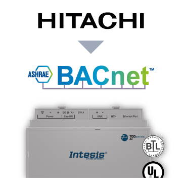 The Hitachi interface has been specially designed to allow bidirectional control and monitoring of Hitachi VRF systems from a BMS, SCADA, PLC or any other device working as a BACnet IP Server or a BACnet MSTP Master. FEATURES UL Certified BTL Certified Direct access to outdoor unit’s communication bus. Scan: Automatic identification of the units presents in the VRF system. Outdoor unit’s signals available for the integration. Supports both BACnet/IP and BACnet MSTP physical layers. Datalogging through external USB port. Configuration through IP or USB (Console) port. Front cover LED indicators to provide easy to check communication status on both the Ethernet and serial ports. Automatic updates for both Intesis MAPS and interface’s firmware.