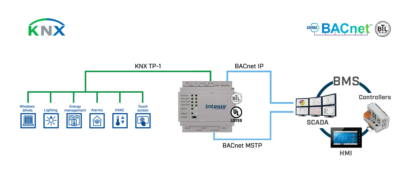 Integrate any KNX device or installation, with a BACnet BMS or any BACnet IP or BACnet MS/TP controller. The aim of this integration is to make accessible KNX communication objects and resources from a BACnet based control system or device, as if it was a part of the own BACnet system and vice-versa. FEATURES UL Certified BTL Certified Support for BACnet IP Client BACnet Advanced features available (Trend logs, Calendars, etc.) Support for KNX TP devices. Control up to 3000 KNX communication objects. Easy integration & updates with Intesis MAPS
