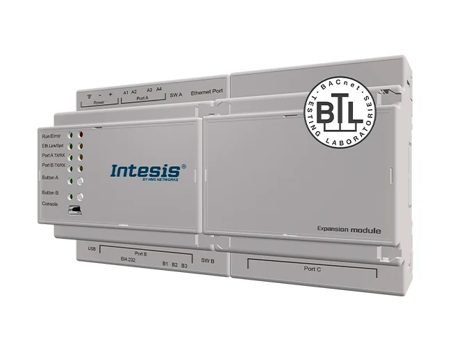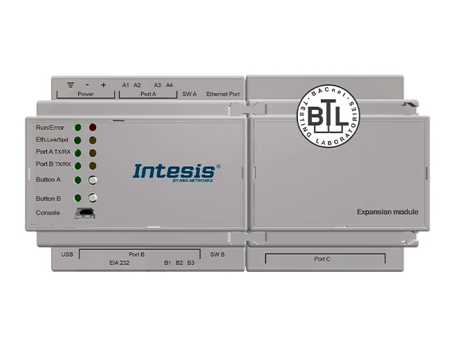 The Intesis BACnet-EtherNet/IP gateway allows you to seamlessly inter-connect PLC/BMS systems and their connected devices between BACnet IP&MSTP Control systems and EtherNet/IP networks. This gateway works as a BACnet slave/server on the BACnet side and as a EtherNet/IP adapter on the EtherNet/IP side. FEATURES UL, BTL & ODVA certified Support for BACnet IP or BACnet MSTP server BACnet Advanced features available (Trend logs, Calendars, etc.) EtherNet/IP adapter interface (Anybus CompactCom technology) Control and monitoring over EtherNet/IP based Scanners Easy integration & updates with Intesis MAPS
