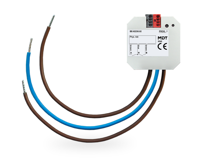The MDT Universal Interface BE, for example, makes conventional push-buttons, switches, window and auxiliary contacts “smart” for KNX. The comprehensive application provides the suitable parameters for a wide range of applications. Versions for floating contacts and 230 V AC are available.