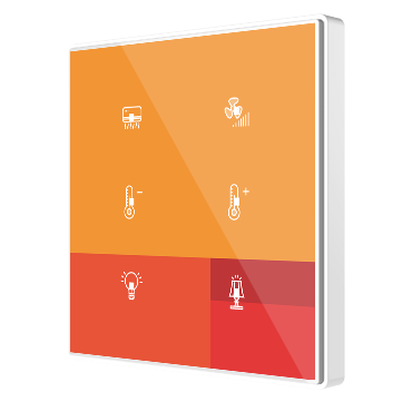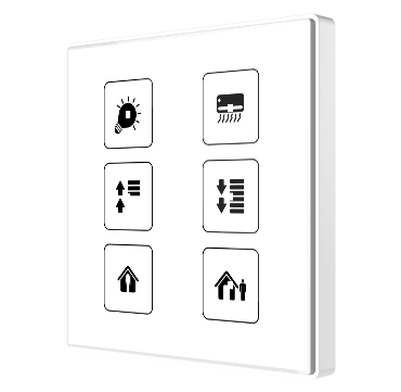 Square TMD is a capacitive switch with 1, 2, 4 or 6 multifunction buttons. Square TMD is a KNX switch with capacitive buttons that satisfies the design requirements of any project thanks to its total customization: everyone can create unique compositions, which could include images, icons, texts or logos. This customization is printed on a high-strength tempered glass with a polycarbonate frame to finish off the author’s work. Square TMD 1, 2, 4 or 6 allows selecting the function for each button and also includes thermostat function, internal temperature probe and two analog/digital inputs Available models: Standard White/Black/Silver or Customized.