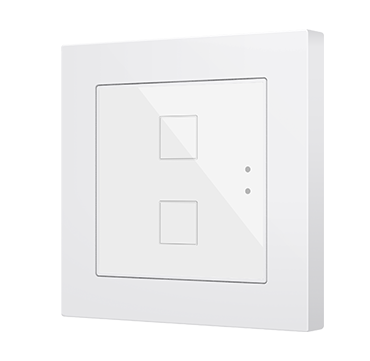 Customisable backlit capacitive touch switches in the Flat 55 family (standard frames 55 x 55 mm) with proximity sensor and flat design (9 mm). Flush fitting with Zennio ZS55 frames, switches and sockets. Create unique designs, including images, icons, texts or logos printed on tempered glass. 1, 2, 4 or 6 button versions available all with backlit icons, that adapt according to ambient luminosity and proximity sensor. Flat 55 v2 incorporates a thermostat, as well as 2 analog-digital inputs to be configured as binary inputs, sensors, push buttons, temperature probes or motion detectors. Installation in standard mounting box with 55 x 55 frames of 1/2/3/4 modules (white, gloss white, anthracite or silver). Accessories: temperature probe and motion sensor. Frame not included.