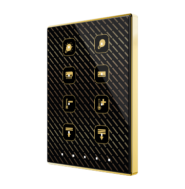 TMD Plus is a KNX switch with capacitive buttons that satisfies the design requirements of any building thanks to its total customisation. Anyone can create unique compositions, which could include images, icons, texts or logos, as well as decide how to install it (portrait or landscape). This customisation is printed on a high-strength tempered glass, with an anodized aluminium frame to finish off the author’s work. 4, 6 or 8 buttons are the available formats, so that pairs or individual buttons can be used as personalized controls with LED indicators. TMD has 5 LEDS that can be used as additional buttons to assign direct functions. TMD also includes thermostat function, internal temperature probe and two analog/digital inputs.