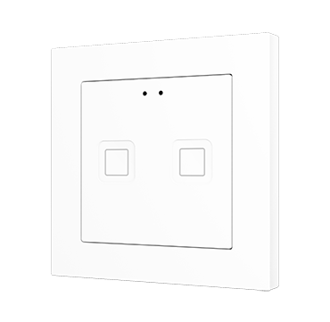 New family of flush fitting polycarbonate capacitive touch switches with customisable icons, to be combined with 55 x 55 mm frames and Zennio ZS55 switches and sockets. 1, 2, 4 or 6-button versions all available with backlit icons that adapt according to ambient luminosity and proximity sensor. It incorporates a thermostat and one input for temperature probe. Installation in standard back box with 55 x 55 1 to 4-gang frames. Frame not included. Accessories: temperature probe.