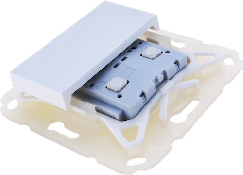 TheKNX TP Push Button 420secureis apushbutton insertwithintegrated bus coupler and mounting kit. The device is available with one or two rockers. Each rocker offers two pressure points (up/down).The device is part of ourMATCH 55 pushbutton series. With the supplied installation kit, the pushbutton fits mechanically to numerous switch ranges available on the market with internal dimensions of 55 mm. The soft and quiet push-button operation allows the installation in bedrooms and living rooms.The application offers extensive functions for switching, dimming, blinds, value transmitters, scene and colour control as well as a sequence controller. Each button on a rocker can be configured individually. The flexible operating concept also allows different functions on one button depending on the setting.The device also contains 10 independent logic or time functions. The device supportsKNX Data Security.