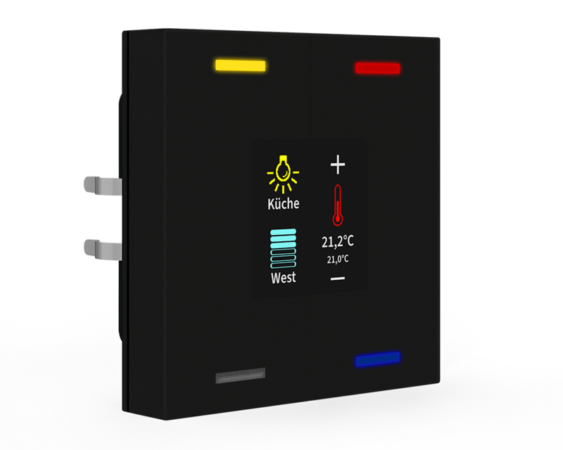 The black version can be ordered now, available from 11/23The MDT Push-button Smart 60 releases KNX telegrams depending on the paramerization after pressing the buttons. The RGBW status LEDs can be controlled with internal or external objects. The LED brightness is controllable via day / night or brightness object. In addition to switching, dimming, blinds, scenes or sending values, a lot more functions are available. The Push-button Smart 60 has 4 integrated logic blocks.
