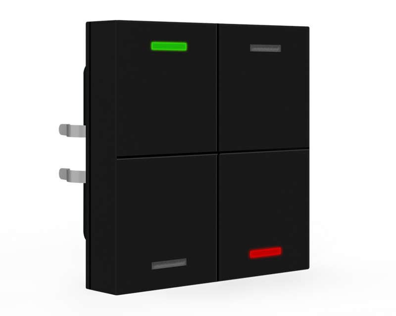 Fits swiss switch ranges (60 mm) New multi-touch function, sends up to 4 values / DPTs on the same or different objects Innovative group control with long / extra long button press Push-buttons can be programmed for 1 or 2 button operation 1 and 2 button operation for switching, dimming, shutters, values Changing of values / scenes with up to 4 values Short / long button push and 2 objects Two RGBW status LED per button pair LED brighness controllable via day / night or brightness object 4 logic blocks Integrated bus coupling unit Production in Germany certified according to ISO 9001 3 year warranty