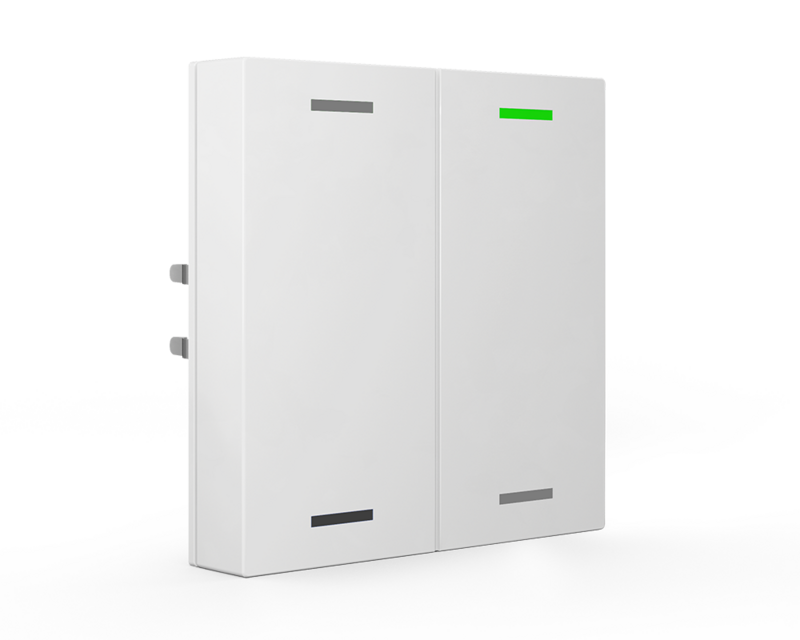 The MDT Push-button Lite 63 is a neutral KNX push-button with vertically arranged 2 button operation and colour-adjustable status LEDs. The buttons can be set as 2 button operation (two-surface) or 1 button operation. Each push-button surface has 2 RGBW status LEDs. Aside from switching, dimming, shutter or sending values, there are numerous functions to choose from. The Push-button Lite 63 has 4 integrated logic blocks.The MDT Push-button Lite 63 fits into the switch lines of leading manufacturers, such as:Busch-Jaeger future linear, solo, carat, Busch-axcent
