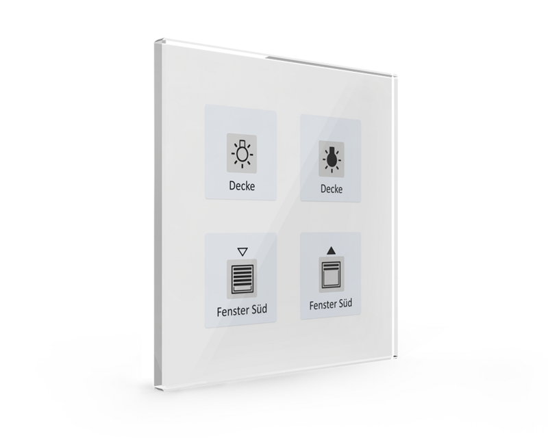 The MDT Glass Push-button releases KNX telegrams after touching the sensor areas on top, 1 or 2 button operation can be parameterized.