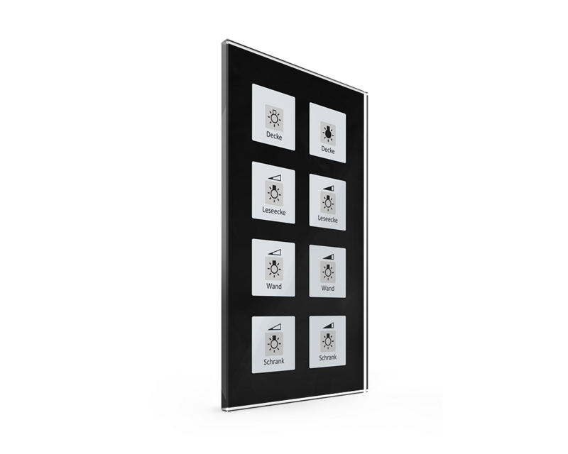 The MDT Glass Push-button releases KNX telegrams after touching the sensor areas on top, 1 or 2 button operation can be parameterized.