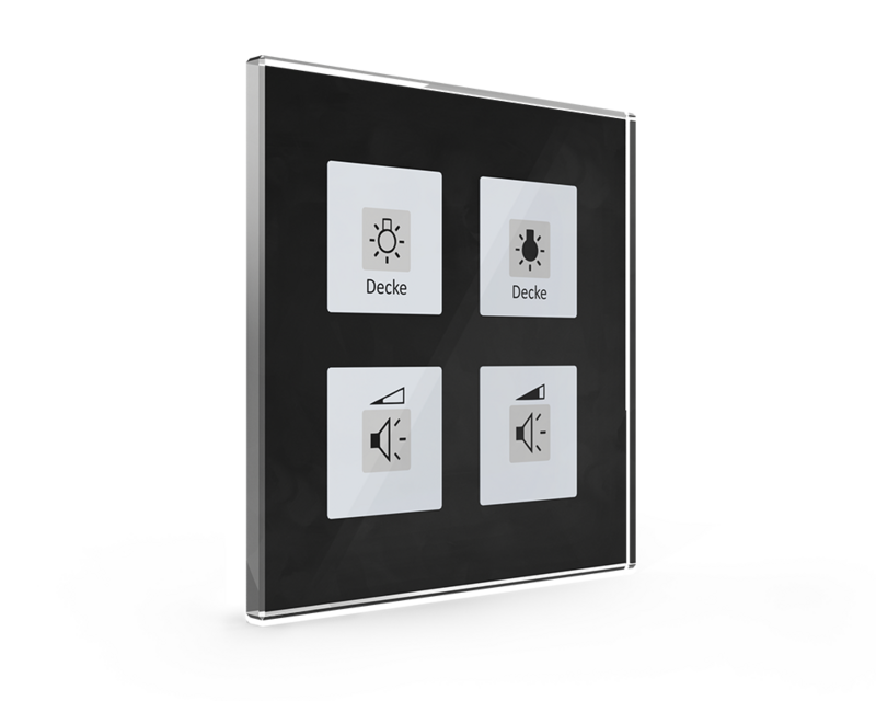 The MDT Glass Push-button releases KNX telegrams after touching the sensor areas on top, 1 or 2 button operation can be parameterized.
