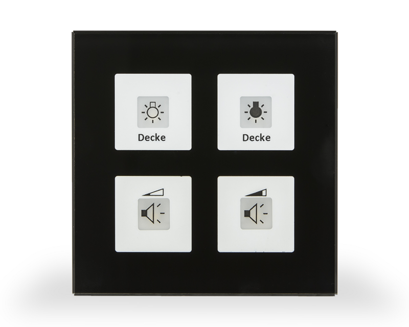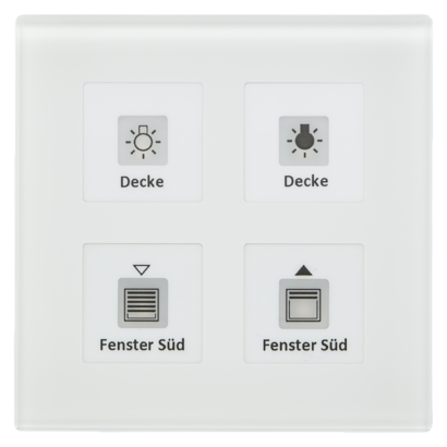 KNX RF+ protocol in system mode Commissioning with ETS5 or higher With temperature sensor to measure room temperature Sensor areas can be programmed for 1 or 2 button operation NO or NC contact operation, operational time of push-button adjustable Forced setting function for each output Operation with short / long button push and 2 objects Operation of blinds and shutters, 1 and 2 button operation Can be set as 2-fold switching actuator or 1-fold shutter actuator (version with 4 buttons) Can be set as 4-fold switching actuator or 2-fold shutter actuator (version with 8 buttons) 4 integrated logical functions, cleaning function Additional switching channel (e.g. panic function) Connection via KNX RF+ Line Coupler Surrounding orientation light with day / night object Labelling foil to be inserted behind the glass front To replace conventionel push buttons To upgrade your installation without installing KNX bus cables Power supply 230 V AC Dimensions: 4-fold 92 x 92 mm / 8-fold 92 x 163 mm Installation with included support ring, delivery with labeling foil Integrated bus coupling unit Production in Germany, certified according to ISO 9001 3 year warranty