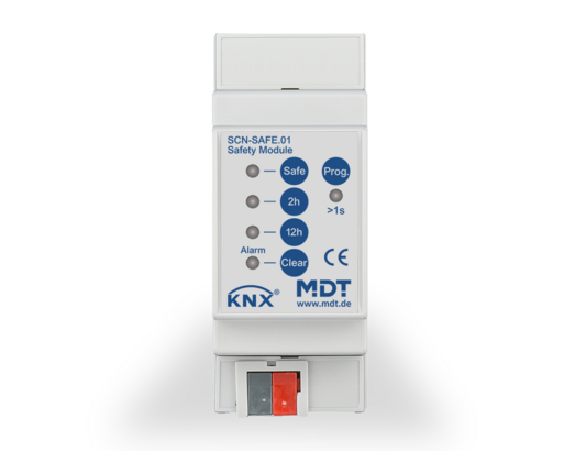 The new MDT security module prevents all connection-oriented accesses of the ETS, such as the programming and also the unloading of the bus devices, in the KNX line. This significantly increases the safety of the protected line in the inner and in the outdoor area.A manipulation of the device programming is no longer possible. The safety function is started automatically after bus voltage recovery / programming of the safety module. The deactivation of the safety function is possible depending on the set safety level via the control buttons on the device and / or with the safety password via telegramm. The integrated device monitoring system controls up to 100 KNX devices cyclically. As soon as a device is missing or no longer responds due to a defect, an alarm message is sent.