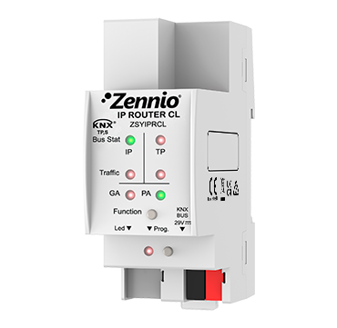 IP Router CL can be used as line coupler or area coupler with a IP based backbone or main line, through KNXnet/IP Routing protocol. It also allows programming or monitoring a device from the IP network (PC, BMS system...) by using KNXnet/IP Tunneling protocol (up to 4 connections at the same time). It does not need external power supply nor PoE.