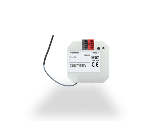 KNX RF+ Line Coupler to connect MDT KNX RF+ devices like MDT Push-button RF+ or MDT Glass Push-button RF+ KNX RF+ protocol in system mode Flush mounted, integrated BCU For operation inside the EU, 868MHz Commissioning with ETS 5 or higher Compatible with the new KNX RF+ specification Filter functions to reduce bus load Flush mounted in an installation box Dimensions (W x H x D): 41 mm x 41 mm x 22 mm Integrated bus coupling unit Production in Germany, certified according to ISO 9001 3 year warranty