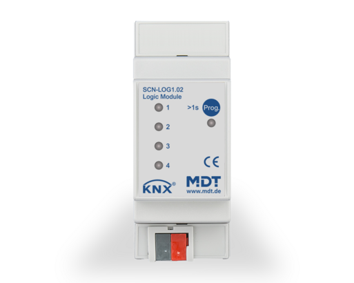 The MDT Logic Module is used for fast and easy compilation of logic functions to control building automation systems. All the functions are parametrized directly in the ETS without additionally software tools. There are 24 independent function blocks with arbitrary functions available. For each function a description can be stored in the ETS. The 4 LEDs on the front panel can be controlled optional by objects. According to date, time and location the Logic Module calculates sunset, sunrise and twilight. Additionally there are output objects available for sommer / winter time, day of the week, every hour, every minute, day / night.