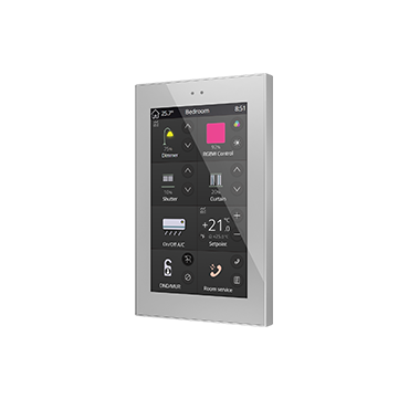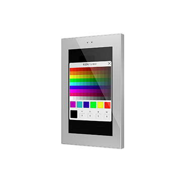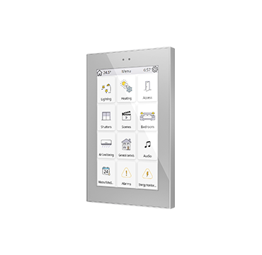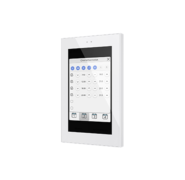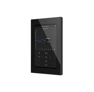 Color capacitive Touch panel with 5” display and a resolution of 480 x 854 pixels which allows a complete control of the installation thanks to its 12 fully customizable pages while maintaining a minimalist aesthetic. It has 2 analogue-digital inputs, internal temperature probe and 2 independent thermostats. It also incorporates a proximity sensor to detect activity for a quick start, as well as disabling the screensaver if configured. Moreover, it incorporates USB and Ethernet ports for program update.