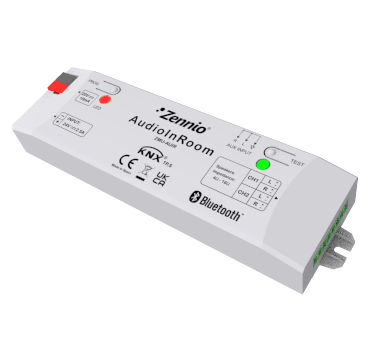 Audio controller for hotel rooms, which allows guests to play music from their own smartphone through Bluetooth® connection or from an auxiliary audio input (such as TV). It has two stereo channels (20 W), so that you can enable/disable, mute or adjust volume in two independent areas. Bluetooth® pairing is restricted with password to make sure the guest is connecting to the audio system in his room. Accessories: loudspeakers Ø 6.5”, 8 Ohm or Ø 3.5”, 4 Ohm.