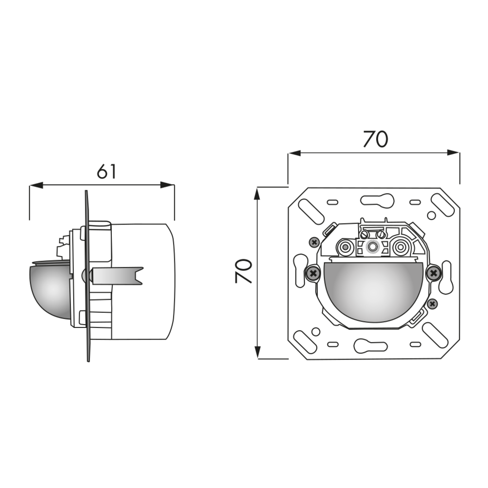 - (kate ei kuulu komplekti) 70 x 70 x 61 mm < dt> tüüp. toite sisend: