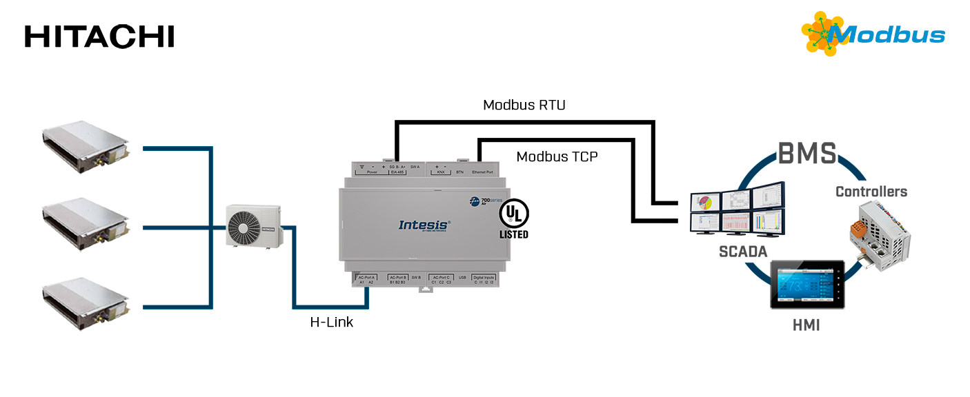 Intesis INMBSHIT016O000 Hitachi VRF süsteemid Modbusi TCP/RTU liidesesse – 16 ühikut