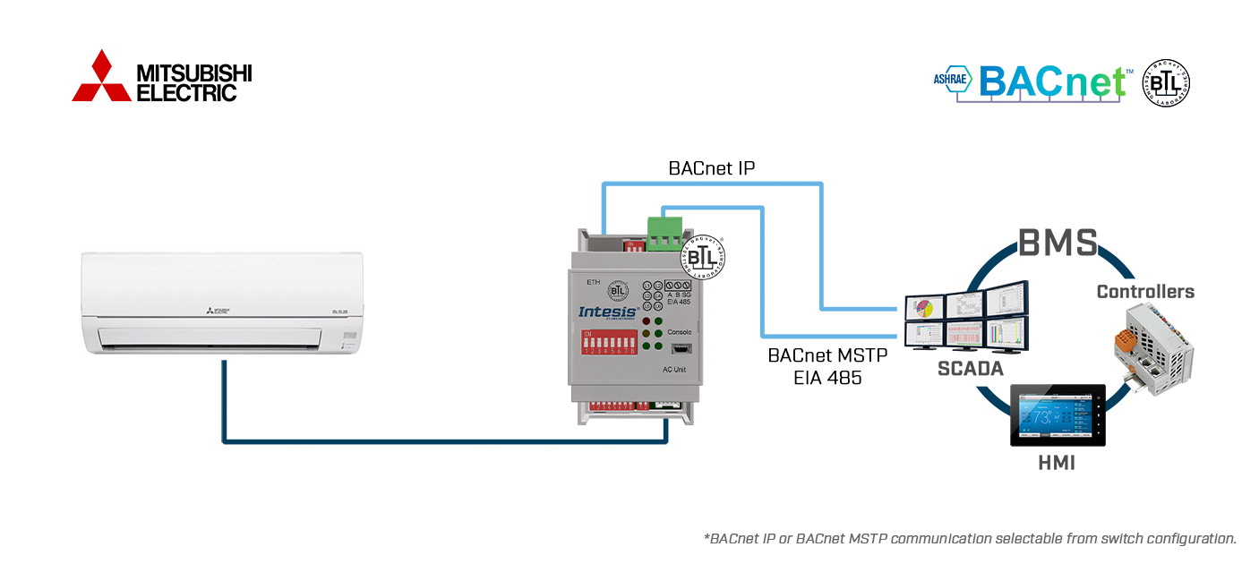 Intesis INBACMIT001I000 Mitsubishi Electric Domestic, Mr.Slim ja City Multi ja BACnet IP/MSTP liides – 1 ühik