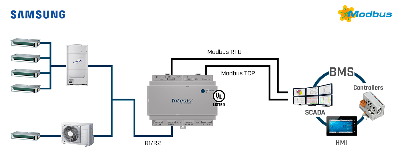 Intesis INMBSSAM016O000 Samsung NASA VRF süsteemid Modbusi TCP/RTU liidesesse – 16 ühikut osta online eest Eestis - KNX point