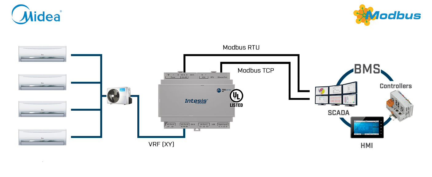 Intesis INMBSMID004I000 Midea Commercial & VRF süsteemid Modbus RTU liidesele - 4 ühikut