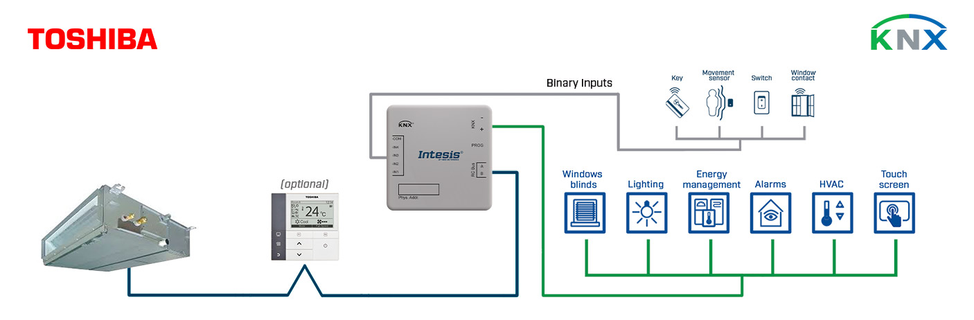 —Intesis INKNXTOS001R000 Toshiba VRF ja digitaalsüsteemid KNX-liidese binaarsete sisenditega – 1 ühik