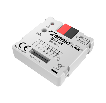 BIN 44 on moodul, millel on 4 binaarset sisendit ja 4 LED väljundit. Binaarseid sisendeid saab konfigureerida andurite, lülitite või potentsiaalivabade nuppudena. Binaarseid väljundeid saab kasutada madala vooluga LED-juhtimiseks. Paigaldamine standardsesse paigalduskarpi.