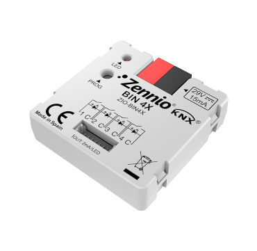 BIN 4X on moodul, millel on 4 konfigureeritavat kanalit binaarsete sisendite või LED-väljunditena. Binaarseid sisendeid saab konfigureerida andurite, lülitite või potentsiaalivabade nuppudena. Binaarseid väljundeid saab kasutada madala vooluga LED-juhtimiseks. Paigaldamine standardsesse paigalduskarpi.