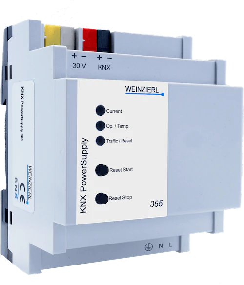 KNX PowerSupply 365 on 640 mA siini toiteallikas, millel on kõrge efektiivsus ja väike, vaid 4 ühikut (72 mm). Seadmel on integreeritud siini õhuklapp ja lisaks on see väljund lisatoitel. Kolm mitmevärvilist LED-i esiküljel näitavad seadme seisukorda. Need annavad hoiatusega märku ülekoormusest, temperatuuri ületamise ja telegrammiliikluse ning lähtestamise olekuga. Need kaks nuppu võimaldavad KNX-i rea lähtestada.