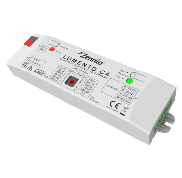 LED-dimmer 4 kanaliga (RGBW või üksikud kanalid), mis on orienteeritud LED-tehnoloogiale ja pideva vooluregulatsiooniga. Hämarduskanaleid saab konfigureerida 4 sõltumatuks kanaliks, 1 RGBW kanaliks või 1 RGB kanaliks + 1 eraldi kanaliks. Sellel on käsitsi testimisnupp kanalite toimimise kontrollimiseks. Maksimaalse voolu valik parameetri ja käsitsi valijaga: 220, 300, 350, 500, 550, 630, 700 või 750, 900 ja 1000 mA.